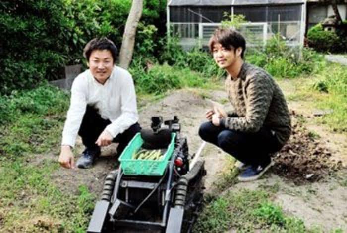 inahoの菱木社長(左)と共同経営者で技術を担当する大山宗哉COO。農業の新たなビジネスモデルを探る(撮影:梅谷秀司) 開発した収穫ロボットは自律走行型で、現在はアスパラガス向けが対象。地面から伸びている長さによって、収穫時期かどうかをAIで判断し、ロボットアームで刈り取っていく。日差しなどの環境が日々変化する中で、正確に収穫の是非を認識するのに苦心したという。