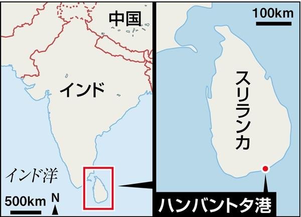 スリランカの港に中国旗 99年間譲渡「一帯一路」債務重く“借金のカタ”に奪われる 【ニューデリー=森浩】スリランカ政府は、中国の援助で建設した南部ハンバントタ港を中国国有企業へ引き渡し、現地紙によると今月1日、港湾当局の建物に中国国旗が掲げられているのが確認された。債務の返済に窮したスリランカが“借金のカタ”に海のインフラを奪われた形だ。南アジアで中国と主導権を争うインドは、対抗するように近隣の空港の権益を買い入れる計画を進める。かつての小さな漁村は国同士の思惑がぶつかり合う舞台となっている。