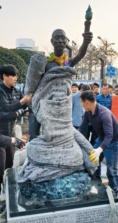 「日露戦争に勝利した日本は1910年に、人々の抵抗を軍隊で押さえ、朝鮮を併合しました」。