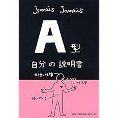 http://g-ec2.images-amazon.com/images/G/09/ciu/ea/87/a52946020ea04ff7ce639110._AA240_.L.jpg http://ec2.images-amazon.com/images/I/41Sg24EmfdL._SL500_BO2,204,203,200_AA219_PIsitb-sticker-dp-bottom,BottomLeft,25,43_SH20_OU09_.jpg http://ec2.images-amazon.com/images/I/41piAf45yEL._SL500_BO2,204,203,200_AA219_PIsitb-sticker-dp-bottom,BottomLeft,25,43_SH20_OU09_.jpg http://ec2.images-amazon.com/images/I/41WIVtlEsbL._SL500_BO2,204,203,200_AA219_PIsitb-sticker-dp-bottom,BottomLeft,25,43_SH20_OU09_.jpg 今、全国で爆発的に売れまくってるこの本。 血液型を持ってないヤツはいないから (ったりめ〜じゃん) やっぱ、該当の本が気に掛かる。。。 消費者の弱点をモロ突いてるってワケ (*´ー`)フフッ 違う血液型の人に、自分を知ってもらう為にプレゼントするテもあるらしい。 ほっほ〜。。。。 勿論、ウチにも1冊あります。「B型説明書」♪ 家族全員、「困ったB」なんで1冊で用は済んじゃいます! 出版社さん、わりぃ〜ね(´0ノ`*)オーホッホッホ 最初に「B型説明書」が発売されたんだってね! 著者がB型なんだって! やっぱりB型は色々な意味で「ヘン」だもん。。。 「ほら、それだからB型はイヤなのよっ!」って、何度言われた事やら。。スミマセンね〜ヽ(`Д´)ノ |