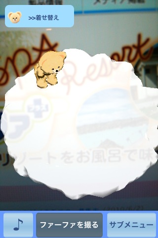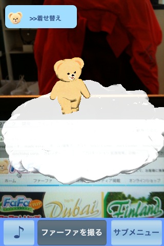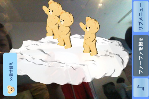 「ファーファ」というロゴを読み込ませると、こんな感じでファーファ(クマさんの名前)が浮かび上がります。この技術もまさに「AR」ってカンジ?