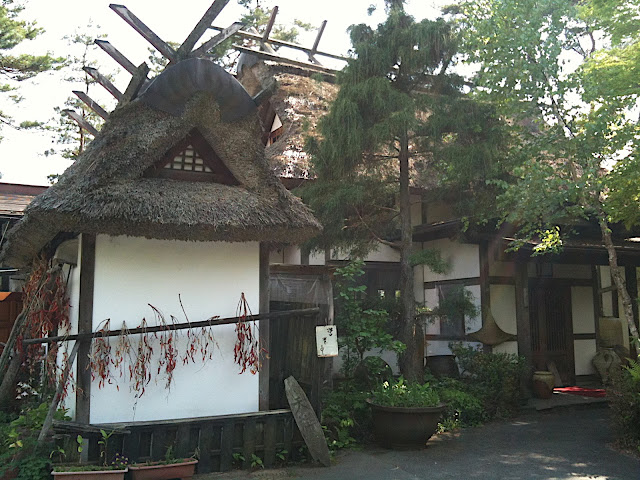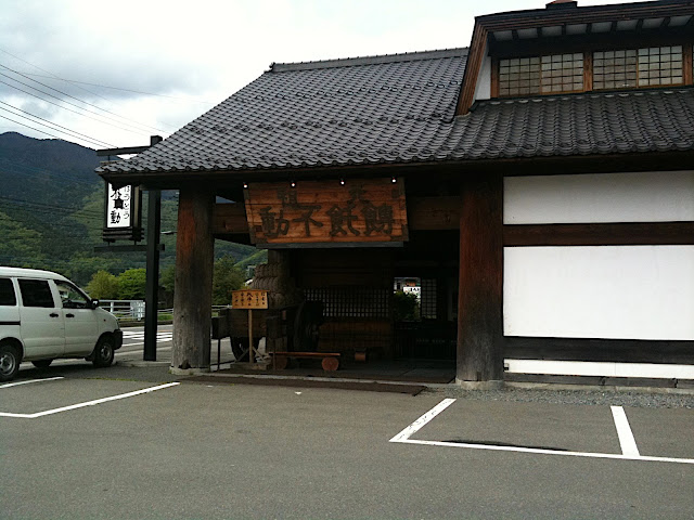 忍野村の小高い峠の近くに有り、藁葺きの古民家風な建物です。