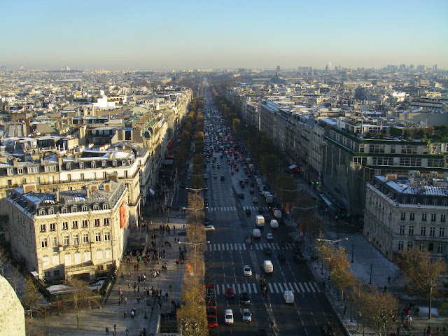 今度は凱旋門下から、歩いてきた方面を。遠くに観覧車が見えるでしょ?