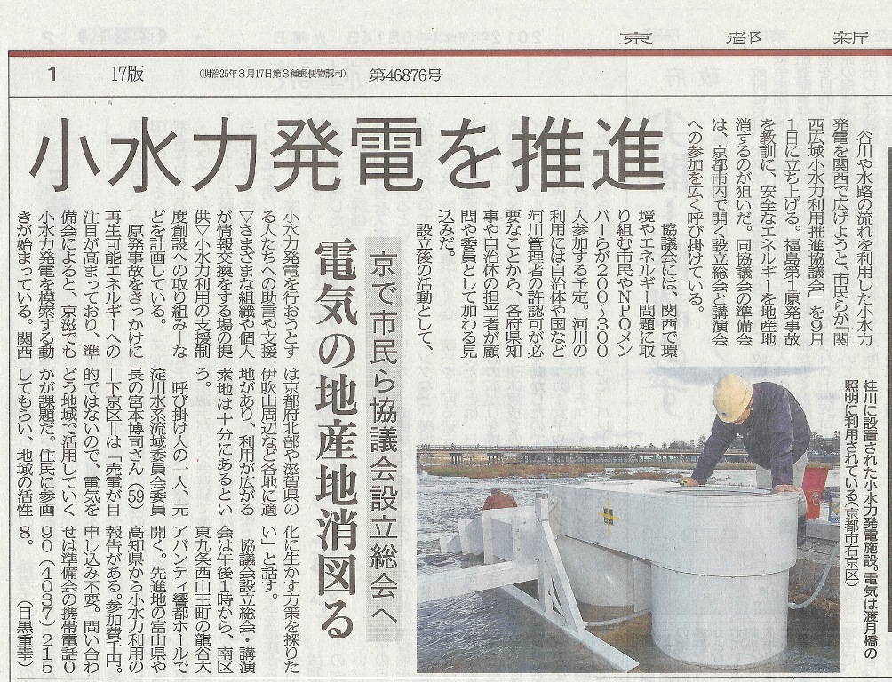〜関西広域小水力利用推進協議会設立総会と講演会の集い