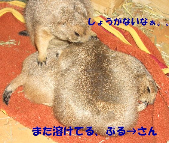 やさしいプリッツが、る〜とパパをマッサージしています。 隣にいるデカイ物体は、ぷる→さん。 昨日「ぬいぐるみ」で可愛いと賞賛されたのと同一プレとは思えない(--; すごいオケツ(笑) そのうち、ぷる→さんもマッサージするよう要求。 仕方なく、マッサージ(っつーか毛繕い)してあげるプリッツ。 あれ?こんなとき必ず割り込んでくる アイツ はどこへ? |
