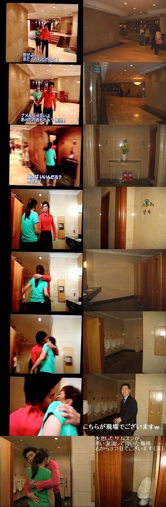 数々の名シーンが繰り広げられた「ソウルプラザホテル」 まずは、一番好きなシーン。衝撃のキス現場・・・男子トイレ(笑) この、ホテルマンのおじさん、とっても親切で「こっちこっち♪」って案内してくれた(笑) #その前に勝手に男子トイレずかずか入って写真撮ってたことは内緒(^m^) なにやら、このおじさん、3カットくらい出演までしたらしい! #ドラマ見直したけど、結局わからず(^-^; 後ろでしゃべってる人たちかな・・。 せっかくなので、そのシーンをどうぞ♪w ヒョヌとサムスンが飲んでたバーはほんとに22階のラウンジなんだけど、その後サムシギがサムスンを連れ去ってキスしたトイレは地下1階。 THE編集マジック(笑) ってかこんなの序の口。 1話(他もろもろ)でお見合いしてたラウンジは全然別のホテルだし(^-^; <ソウルプラザホテル> 地下鉄1号線 市庁駅(130番) キストイレは「別館地下1階」なので、お間違えのないよう。 <協賛> 蚊取犬