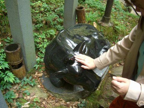 目をなでると、目が良くなるという『赤目牛』 とっても凛々しいお顔です。一生懸命なでてきました〜♪