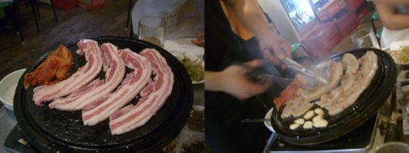 ブログ友達のわっちな&アケさんと新大久保のhttp://www.tonchang.com/「とんちゃん」に行ってきました〜♪ 前回も(動画でw)紹介した、サムギョプサル専門店で〜す。 一見すごい油で重そうなんだけど全然!余計な油は鍋の下にどんどん流れていくんです。そして肉がとってもいいらしく、全然もたれない。安心して食べれます♪ 最後はチャーハンでしめ!最高〜♪ 説明よりも画像をどうぞw ほんとは、チャーハン用に肉を残しとけばよかったんだけど、全く忘れてまして・・・ で、注文時に肉を1人前追加しようと、「(これ)あと1人前とー、チャーハン」 ってお願いしました。 が、通じてなかったらしく・・・チャーハン1人前のみになってた。。 しかも焼き始めて「は!肉は??」って気付いた・・・・遅かったorz 残念〜(;_;) まぁ肉なしでも十分美味しいんだけどね。。 開店時間の4時ちょうどに入り、一番乗り♪ 5時半に店を出たときは長蛇の列でした。うふふ(^^) 私とわっちなは、生ビールにチャミスル、アケさんはウーロン茶でテンション最高(爆) 休む間もなく喋りまくり。いや〜〜楽し〜〜い(^▽^) そのままのノリで移動。行く先はもちろん・・・カラオケ〜♪ 今回は【カラオケ館】。 まだ5時半なので店も空いてて、いきなり「3時間で。」w 店員も苦笑してたw なんたって歌大好きな3人。 歌が尽きることなんてありませーん。 もんのすごい乾燥した部屋の中で、歌いまくり、声は枯れまくり・・喋れなくても歌は歌う!(爆) 韓国曲はもちろん、ドリカムや、クリスマスソングなど懐かしい曲もバンバン♪ 毎度の事ながら、アケさんのすばらしい英語の歌に聞き惚れ・・。ほんとにうまいよね〜。感動。 わっちなも、のっこやELTなどなど、うま〜〜い! 韓国曲もいっぱい歌えてうらやましいわ*^^* 私ももっと勉強しなきゃ〜〜>< あっという間の3時間で、気がつけば、1時間延長されてました(爆) 4時間経過し、連絡がこないはずのフロントから電話がw「4時間になりますので退室願います」って言われたらしい(^-^; ほっといたらエンドレスになりそうだったもんねw すっかりカロリー消費して、小腹がすき、ホットックを食べることに♪ 前回「はちみつ」を食べて、ダラダッラにたれて大変な騒ぎになったアケさんw 今回は3人とも「あんこ」にしました〜♪ 可愛いお兄さんが焼いてる姿を3人で見守りw写真撮りまくり。 お兄さんも写真慣れしてるのか、余裕だったわ。 寒〜〜い外で食べるアツアツのホットック、最高でした♪ わっちな、アケさん、楽しかったね〜♪ また近いうちに行こうね〜〜*^▽^*