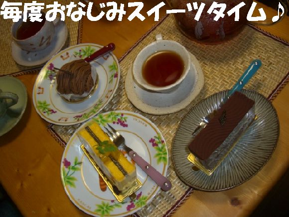 ほぼ月1ペースで開催中のプレ会w megさんとガムシさんが遊びに来てくれました♪ お昼は、前から気になってた近所のマクロビカフェ「茶蔵(チャクラ)」へ。 初めて中に入ったけど意外と広くておしゃれな雰囲気。 まさに隠れ家って感じ(^^) 整体治療院と併設してるので、治療後にここでお茶を一杯・・っていいかも。 メニューはカレーとパスタしかないとのことだったけどOK♪ チキンカレーとねぎのペペロンチーノ。 3人で2皿づつ注文して分けました(量が少なめだったので正解w) カレーはいろんな調味料の味がして独特。マクロビ食なんだけどとっても美味しい♪ パスタは、水菜と白ネギが乗ってて、中に練り梅が。混ぜ混ぜ♪ 麺自体になにか練りこんであるようで味がする。味付けは意外としっかりしててこちらも美味しかった。 番茶も美味しかったな〜♪ そして我が家へ移動。 相変わらずの大興奮クレアをクリアして、プレ部屋へ(^^) 前回る〜とに噛まれたmegさんは、寒くもないのにフリースを着て完全防備(笑) ガムシさんも噛まれた場面を見てるので、る〜とに対して警戒。発情期は終わったから大丈夫だとは思うんだけどね〜、、 でもそのうち慣れて、なんとか抱っこもできてた。よかったよかった(^^) ぷる→さんは、誰彼かまわず、すぐに抱っこ攻撃でベッタリ。さすがです。 http://www.eryou.com/yasuyo/070407pluto01.jpg で、ポッキー。 「ポッキーダンスしないかな。。」というリクエストにお応えするためw里芋治療をしようかと思ったんだけど、、途中から急に機嫌が悪くなるポッキー。 しっぽボワっとふくらませて、ちょっとでも触ろうとすると「キキキキキキキ!!!!!」あーあ。。 歯がないので噛まれても痛くないからそれは大丈夫なんだけど、1度私がなでようと怒っててもかまわずひっくり返したら、白目になって怒ってた(^^; ダメだこりゃぁ。。 http://www.eryou.com/yasuyo/070407pocky01.jpg ちょっと休憩して、いつものスイーツターイム♪ また山ほどのケーキケーキ(笑) マクロビなんてできないよ〜〜(苦笑) 美味しかった*^-^* http://www.eryou.com/yasuyo/070407sweets.jpg クレアもおこぼれが欲しくてピッタリくっつき攻撃。仕方ないのでワンコ用ボーロをガムシさんに託す。 ガムシさんの「待て」指示を必死で聞くクレア。おっかしかった〜〜(^▽^) http://www.eryou.com/yasuyo/070407crea.jpg お腹もいっぱいになり、まったりタイム。 これまたいつもの光景w megさんのお昼寝タイム。今日はぷる→を抱っこしたまま30分くらいこの状態で寝てた(^^; http://www.eryou.com/yasuyo/070407meg.jpg ビビリプリッツも後半は徐々に近づけて、ガムシさんは無事なでなで成功(^^) あっという間の5時間。楽しい時間ってほんと早いよね〜(^^;