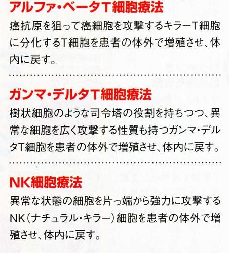 まずは前回説明した『癌ワクチン』などにより、攻撃の『司令塔』を教育する方法です。人間の免疫細胞の中で、T細胞などの『攻撃部隊』は、数多く体の中に存在します。そして、身体の中をパトロールしながら、外部から侵入してくるウィルスや細菌を発見しだい、攻撃し撃滅させているのです。