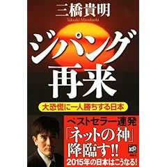 http://x6.cho-chin.com/bin/ll?081850800 アクセス解析 http://ecx.images-amazon.com/images/I/51iN5BfVzDL._SL500_SS75_.jpg 「国債を刷れ!」好評発売中です。ご購入は↓こちらをクリック http://www.amazon.co.jp/gp/product/4883926788三橋貴明さんの「ジパング再来 大恐慌に一人勝ちする日本」、http://ecx.images-amazon.com/images/I/51O5QeoyFFL._AA240_.jpghttp://www.amazon.co.jp/dp/4062156156/ 実は、 私の作ったグラフが載っていたりする関係(p.61)で、発売直前に贈って頂いていたのですが、昨晩ようやく読了しました。 発売前に入手していた私よりも早々と読み終えてアマゾンのレビューを書いていた方が沢山いらっしゃるようです(すでに、三つも出てますね)。凄い! 本の冒頭が マルコ・ポーロ「東方見聞録」の引用から始まるという演出が、またぐぐぐっ、と興味をひきつけられるところです。 きっと、 書店で表紙を見て「おっ?」と思い、ちょっと手にとって見たお客さんは、 この部分を読んで思わずレジに並ぶのではないでしょうか。 私ならきっと、レジに並びます^^。 それにしても、 これだけ立て続けに経済ネタの本を出されているのに、しっかり新鮮味が感じられます。 このあたりが三橋さんの才覚の凄味ではなかろうかと思います (逆に言えば、その才覚がなければ、ここまで有名になられていないかも知れませんね^^)。 その新鮮味が感じられる箇所はいくつもあるのですが、 私のお気に入りを一つだけ紹介しますと 「インフレビジネス」「デフレビジネス」という言い回しです。 インフレビジネスというのはインフレのとき、経済がバブル気味のときに儲かりやすい商売、 デフレビジネスというのはデフレ、デフレ不況のときに儲かりやすい商売 のことを指しています(と私は解釈しています)。 インフレビジネスは、07年までに流行っていた商売(多分に怪しげな商売)ですが、 今の世界的な「デフレ不況」に活況を呈するのはどんな商売か? ということですね。 デフレ不況で民間がリスクを取り難い、よって、民間が借金を増やさない、増やせないときは、政府は資金集めが容易になる。 と言いつつ、 当ブログの読者の皆さんのうち、かなりの方が既に購入済みかも知れませんが^^; http://ecx.images-amazon.com/images/I/41J-z9TMhhL._SL500_SS75_.jpg http://www.amazon.co.jp/dp/4062156156/ さて、 後半は、 ジパング再来 という言葉から私が想起する事柄について書いてみたいと思います。 まずはマルコ・ポーロの時代の日本について。 実はその時代、ちょうど元寇のときですね。 マルコ・ポーロは元の皇帝フビライに仕えていましたので、まさにその当事者の一人と言えそうです。 に、こんな話が書いてあります(あくまでも推理、フィクションだと思いますが) 一度目の元寇では、 元軍は意外にも日本軍の根強い抵抗に遭い、 戦況が優勢なうちにさっさと引き上げました。 というのは、 一度目は様子見、威力偵察のための出兵であり、 優勢なうちに引き上げれば「勝った」と皇帝に報告できるからなのですが、 鎌倉幕府側としては、 ・どうもフビライはあきらめてないらしい(負けてないので)。 (フビライが日本を攻める動機は、 世界に冠たる元帝国として、日本にはどうしても自分たちに跪かせたい ということだったようです。黄金とかは関係なく) ・次も確実に博多に攻めてくるとは限らない。 ・船で攻めてくるからには、 いきなり若狭あたりに上陸して京の都を突かれでもしたらひとたまりも無い。 ・どこに攻めてくるかはっきりしなければ、 限られた兵力をどこに集中すれば良いか、策が全く立たなくなってしまう。 ということで、 確実に博多めがけてまっしぐらに攻めてくるように 執権時宗の異母兄、時輔が元の大都(現在の北京)に工作に赴くわけです(もちろん、執権の兄としてではなく、身分を偽って)。 それで、 あの手この手でいろいろ手繰っていくうちに、 ついに皇帝に近いマルコ・ポーロと接触し、 親しくなることに成功します。 そして、 博多のすぐ近くにある大宰府に、 「大量の黄金が貯め込まれている」と吹き込むわけです。 小説の中ではこの工作がめでたく功を奏し、元軍は再び博多に現れます。 博多湾に防塁をめぐらし、大兵力を集中してしっかり準備を整え、 待ち構えていた日本軍は元軍を寄せ付けず、 元軍が上陸もできずに船の上に引き籠っていたところに神風が吹いて、 大半の船が転覆・損壊し、戦いはあっけなく幕切れとなるわけです。 この高橋さんが小説の中で示した推理がもし本当なら、 マルコ・ポーロはまんまと鎌倉幕府側の情報工作にひっかかって「黄金の国 ジパング」と書いてしまったということになるかも知れません。 ちなみに、 高橋さんの「時宗」はNHKの大河ドラマの原作なのですが… 上記の策謀の話、ドラマではまるで描かれていませんでした。 他にも、病死が暗殺になってたり、死んだ人が生きてたりとか、どこが原作やねん!と言いたくなるくらい話が変わっていましたが、 個人的には原作の方が10倍くらい面白く感じられま