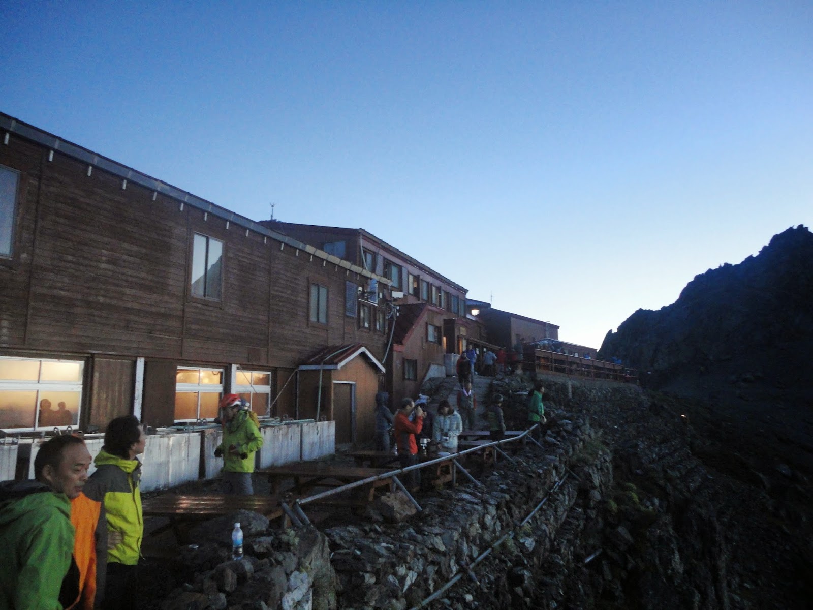 登山者が ご来光拝むので 頂上は混んでたので