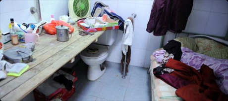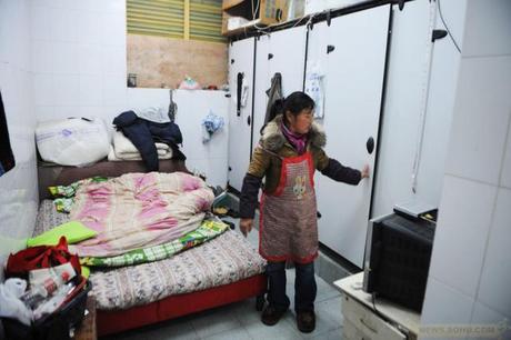 この写真とは違うのですが、中国では、正規な手続きをして、街の公衆トイレに住んでいる人たちがいます。(トイレの一部にちゃんとした部屋があるようです。)この人たちは「トイレ守」とでも言うべき仕事を役所から委託され、それで給料貰っています。仕事は「トイレの清掃」と「トイレ料金の管理」だと思います。