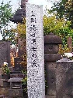 渋谷での署名活動の終了後、『パチンコ廃止を求める会』事務局長・渡邊昇氏の案内で台東区にある山岡鉄舟のお墓、『全生庵(ぜんしょうあん)』へ墓参りに赴いた。 http://livedoor.blogimg.jp/samuraiari/imgs/f/f/fffe6ed4.jpghttp://livedoor.blogimg.jp/samuraiari/imgs/4/e/4e53cd1b.jpg http://livedoor.blogimg.jp/samuraiari/imgs/d/5/d5d85a50.jpghttp://livedoor.blogimg.jp/samuraiari/imgs/7/5/75a8b17a.jpg 山岡鉄舟とは言わずと知れた幕末の幕臣。テレビドラマや小説などでその活躍は知られているが、江戸城開城に際して有名な勝海舟と西郷隆盛の会談は、これより先に行なわれた山岡−西郷会談によるところが大きかったと言われている。 開城において西郷は武器・兵器の引き渡しとともに、徳川慶喜将軍の身柄引き渡しを要求したが、山岡鉄舟はこれを頑として拒絶。 全生庵の本尊は、かつて江戸城の守り本尊だった葵聖観世音菩薩。 後年、山岡鉄舟が明治維新に殉じた人々の菩提を弔うために創建を発願したというが、現在のような明治維新の礼賛からではなく、敵方の怨霊・怨念を祓うという観点から開基されたのではないだろうか?