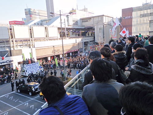 同日立候補を表明し、脱原発を訴える細川護熙元首相に対しては「私も(原発事故以来)脱原発を言い続けている。国と協調して進めていく」と語った。