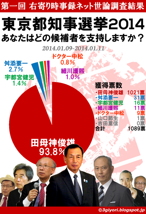 まとめ 以上の事から、右寄り時事録では、 「田母神氏が舛添氏に僅差で勝利する」