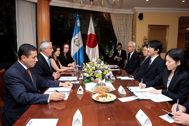 いまさらですが、現地の新聞等から紹介します。 秋篠宮両殿下は30日、グアテマラとメキシコを公式訪問するため、民間機で成田空港を出発。 米国経由でグアテマラに入られ、3日にメキシコに移動される。 メキシコは慶長遣欧使節団が同国を訪れて400周年となるのを記念し招待があり、グアテマラからは国際親善を目的にご訪問の願い出があった。 2014年10月1日 MUSEO IXCHEL(イスチェル民族衣装博物館)をご視察 Japan's Prince Akishino, center, and his wife Princess Kiko, left, arrive to the Mayan museum, Popol Vuh, in Guatemala City, Wednesday, Oct. 1, 2014. Japan's royals are in Guatemala for a four-day official visit. (AP Photo/Moises Castillo) Oct 1, 1:20 PM EDT http://livedoor.blogimg.jp/j1bkk/imgs/3/8/384f60d5-s.jpg http://livedoor.blogimg.jp/j1bkk/imgs/f/6/f6604ac9-s.jpg Japan's Prince Akishino, center, and his wife Princess Kiko, left, listen an expert as a Mayan woman weaves during their visit to Mayan museum, Ixchel, in Guatemala City, Wednesday, Oct. 1, 2014. Japan's royals are in Guatemala for a four-day official visit. (AP Photo/Moises Castillo) http://livedoor.blogimg.jp/j1bkk/imgs/6/b/6bc76b19-s.jpg オットー・フェルナンド・ペレス・モリーナ(Otto Fernando Perez Molina)大統領と。