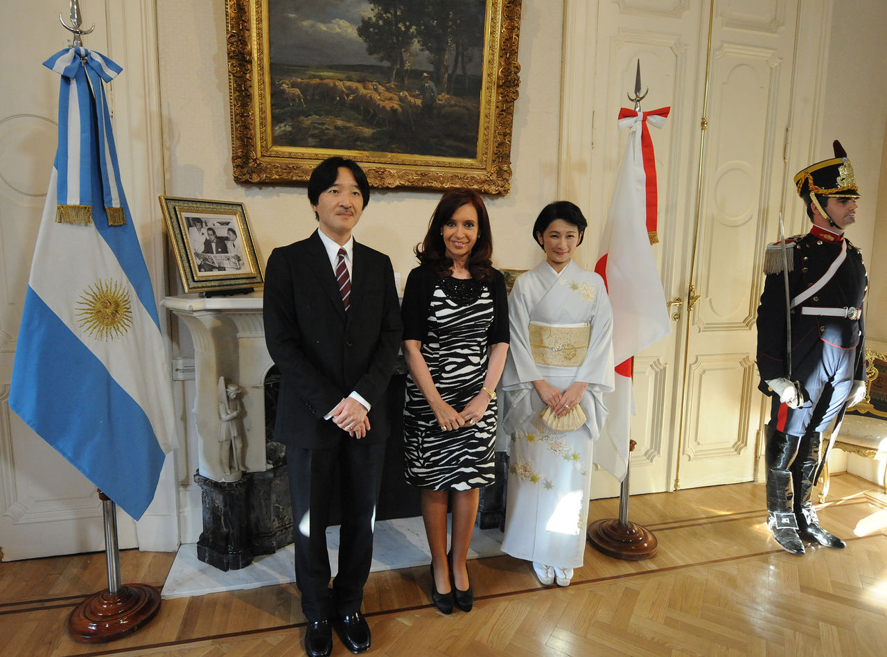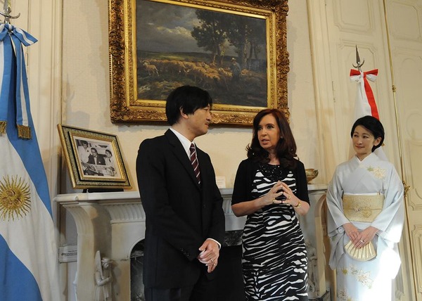 2014年1月31日 アルゼンチン独立の父・サンマルティンの記念碑に献花される秋篠宮両殿下 President Cristina Fernandez de Kirchner 2014年1月31日 フェルナンデス大統領と秋篠宮両殿下 http://www.perfil.com/protagonistas/Boudou-anfitrion-de-la-cena-que-se-dio-en-Cancilleria-a-los-principes-de-Japon-20140202-0005.html ご夫妻は30日夜(日本時間31日朝)、ペルーからアルゼンチンへご移動。31日はアルゼンチン独立の父、サンマルティンの記念碑に献花した後、日本大使公邸で開かれた式典に臨まれた。式典後は、在留邦人や現地で活動する国際協力機構(JICA)のボランティアらと歓談された。 ご夫妻のアルゼンチンご訪問は1998年以来2度目。滞在中、日系団体の歓迎行事に参加するほか、牧場などをご視察。2月3日、帰国の途に就かれる。