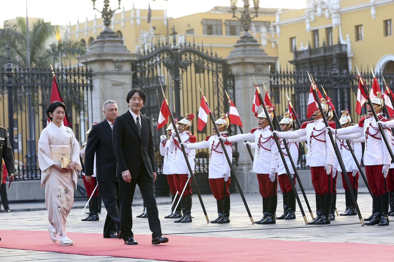 1月31日、ブエノスアイレスの日本大使公邸で、在留邦人と歓談される秋篠宮ご夫妻(共同) 秋篠宮ご夫妻は1月31日、訪問先のアルゼンチンの首都ブエノスアイレスで、日本と同国との移住協定発効50周年記念式典に臨席された。秋篠宮さまは式典で「移住した日本人の勤勉さ、誠実さが伝わり、2国間交流の進化に寄与してきたことを喜ばしく思う」とあいさつされた。