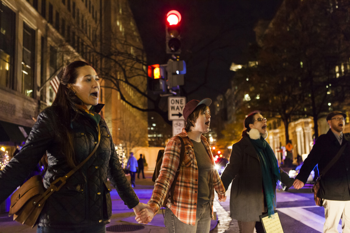 不起訴に抗議するデモが、ニューヨーク、サンフランシスコ、ワシントンD.Cなどで行われた。