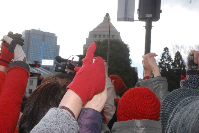 2時を過ぎると、各人のアピールのあいだに、何回かのヒューマンチェーンのコールが永田町に響いた。それは、女性たちの怒りの炎、消すことのできない炎のようでもあった。