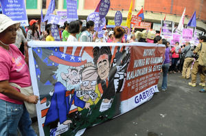 ÂÀÊ¿ÍÎÀïÁèÃæ¡¢¡ÖµìÆüËÜ·³¤Î°Ö°ÂÉØ¤Ë¤µ¤ì¤¿¡×¤È¼çÄ¥¤¹¤ë½÷À¤È¤½¤Î»Ù±ç¼Ô¤¬£²£·Æü¡¢¥Õ¥£¥ê¥Ô¥ó¤Î¼óÅԥޥ˥é¤ÎÂçÅýÎÎÉܶ᤯¤Ë½¸¤Þ¤ê¡¢ÆüËÜÀ¯Éܤˡָø¼°¤Ê¼Õºá¤ÈÊä½þ¤ò¡×¤ÈÁʤ¨¤¿¡£¥Õ¥£¥ê¥Ô¥óˬÌäÃæ¤ÎÅ·¹Ä¡¢¹Ä¹¡Î¾ÊŲ¼¤¬¡¢ÂçÅýÎÎÉܤǥ¢¥¥ÎÂçÅýÎΤȲñ¸«¤¹¤ë¥¿¥¤¥ß¥ó¥°¤Ë¹ç¤ï¤»¤¿¡£