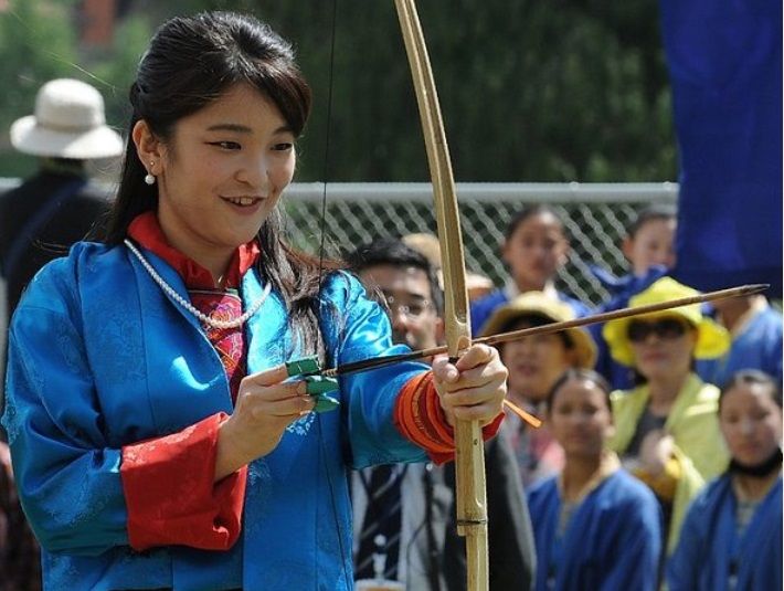 Princess Mako of Japan tried to shoot an arrow at the traditional archery tournament in Changlingmethang National Archery Ground in Thimphu on June 3, 2017.