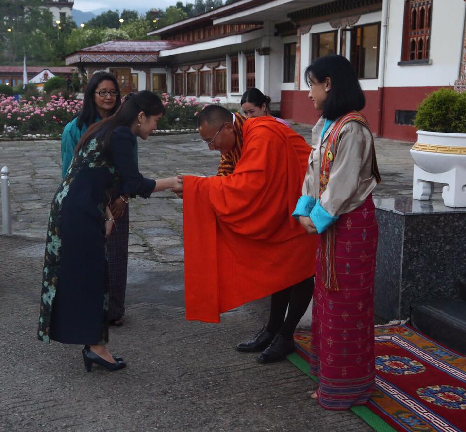 His Majesty The King, Her Majesty The Gyaltsuen, His Royal Highness The Gyalsey, and HRH Princess Eeuphelma with HIH Princess Mako of Japan. Their Majesties hosted a luncheon for Princess Mako at the Lingkana Palace, following an Audience at the Tashichhodzong. http://www.sankei.com/life/news/170602/lif1706020075-n1.html âûҤµ¤Þ¡¢¥Ö¡¼¥¿¥ó¹ñ²¦É׺ʤòɽ·É¡¡Å·¹ÄÊŲ¼¤Î¥á¥Ã¥»¡¼¥¸¤ò¤ªÅÁ¤¨¤Ë ¡Ú¥Æ¥£¥ó¥×¡¼¡Ê¥Ö¡¼¥¿¥ó¡Ë¡áÊ¡ÅÄÎÃÂÀϺ¡Û¥Ö¡¼¥¿¥ó¤ò¸ø¼°Ë¬ÌäÃæ¤Î½©¼ÄµÜ¤´É׺ʤÎĹ½÷¡¢âûҤµ¤Þ¤Ï£²Æü¡¢¼óÅԥƥ£¥ó¥×¡¼¤ÎÀ¯Éܵ¡´Ø¤äÁα¡¤¬Æþ¤ë¾ëºÉ¡Ö¥¿¥·¥Á¥ç¥¾¥ó¡×¤Ç´¿·Þ¹Ô»ö¤ËÎפߡ¢¥¸¥°¥á¡¦¥±¥µ¥ë¡¦¥Ê¥à¥²¥ë¡¦¥ï¥ó¥Á¥å¥¯¹ñ²¦É׺ʤòɽ·É¤µ¤ì¤¿¡£Æ±ÆüÌë¤Ë¤Ï¡¢ÆüËÜʸ²½¤ò¾Ò²ð¤¹¤ë¡ÖÆüËܽµ´Ö¡×¤Î³«Ë뼰ŵ¤ËÎ×ÀÊ¡¢ÅìÆüËÜÂç¿ÌºÒ¸å¤Î¥Ö¡¼¥¿¥ó¤«¤é¤Î»Ù±ç¤ËÂФ·´¶¼Õ¤Î¸ÀÍÕ¤ò½Ò¤Ù¤é¤ì¤¿¡£ ¡¡âûҤµ¤Þ¤Ï¡¢¾¾¤äÇߤʤɤÎÌÏÍͤò¤¢¤·¤é¤Ã¤¿Ã¸¤¤²«¿§¤Î¿¶¤êµ»Ñ¤Ç´¿·Þ¹Ô»ö¤Ë¤´Î×ÀÊ¡£ÅÁÅý²»³Ú¤Î±éÁÕÂâ¤äÍÙ¤ê¼ê·×Ìó£¶£°¿Í¤ÎÀèÆ³¤ò¼õ¤±¡¢¤Ë¤³¤ä¤«¤Êɽ¾ð¤Ç¹ñ²¦¤Î¼¹Ì³¼¼¤Ë¸þ¤«¤ï¤ì¤¿¡£