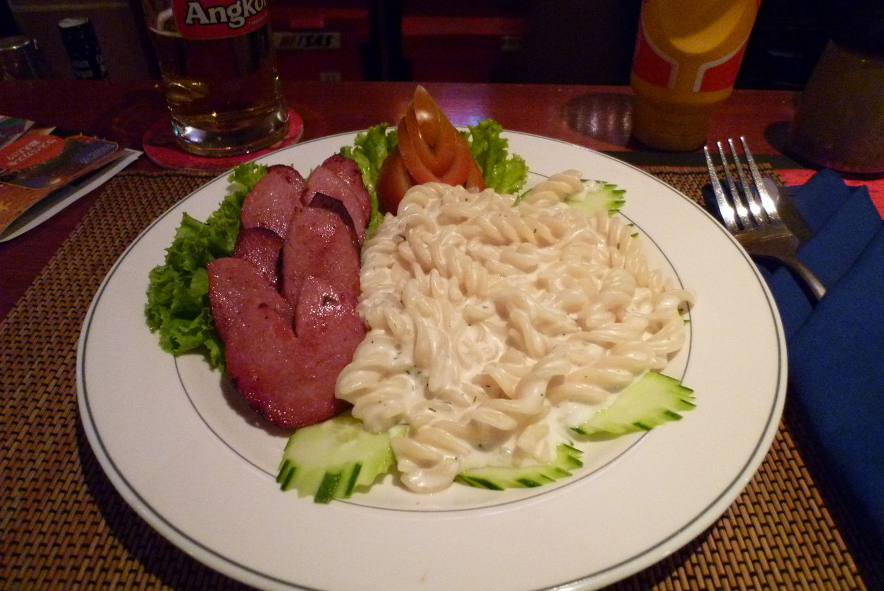 À¸¥Ó¡¼¥ë( Angkor US$1.00 ) ¤ò°û¤ß¤Ê¤¬¤éSwedish Sausage US$8.75¡¡¤ò¡¢