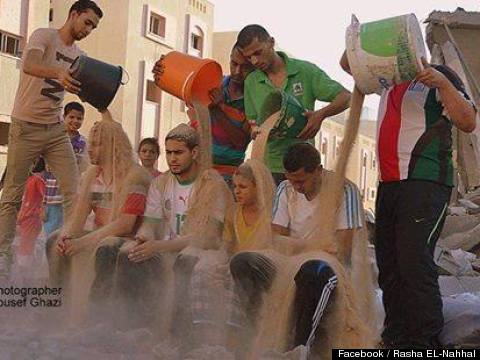 しかし、かぶるのは氷水ではない。ロケット弾などイスラエルからの攻撃で2000人以上が死亡しているガザに住む人々は、その惨状を訴えるため瓦礫をかぶる運動を始めた。発起人となったジャーナリスト、アイマン・アル・アロウルさんが、企画に関して説明し瓦礫をかぶる動画を投稿した。