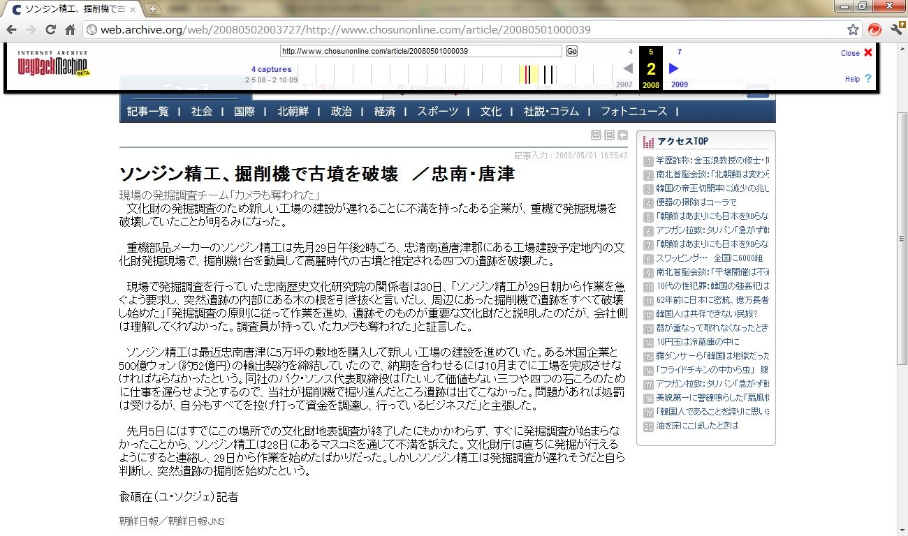 「自国の遺跡さえ破壊する、異常な韓国人達」 2005年10月31日。韓国のソウルで前方後円墳が発見される。 ところが現在、この歴史的遺跡は韓国の考古学会では黙殺されている。その理由はその古代の墓の由来にある。 実はこの墳墓が発見された当初韓国の新聞などは一斉に「古代朝鮮から日本へ前方後円墳が渡った証拠」として 報道していたのである。ところが、よくよく調べてみると、日本の前方後円墳が3〜5世紀に作られたのに対し、 これらの韓国の前方後円墳は5〜6世紀に作られていたことが分かってきた。 さらに韓国の前方後円墳の出土物に日本の埴輪に酷似した土器類が発見されたのだ。 常識的に考えれば、この韓国の前方後円墳が作られた当時に日本から有力な豪族がやってきて当地を治めたか、 若しくは日本からの何らかの影響が古代朝鮮にあったと推察される。 前方後円墳は世界的に見ても非常に珍しい形の墳墓で、日本独自の墳墓文化としても知られている。 そう、だからこそ韓国ではこの古墳を黙殺しているのである。 さらに驚くべき事にこの発見が無かったことにするために、掘削機で「古墳」を破壊するという暴挙に出ている。 2005/10/31 【韓国】ソウルで日本式の前方後円墳発見 KBSが報道(聯合ニュース) 【1500年前の木棺発掘…古墳時代、朝鮮半島を支配していた日本の皇族の墓の可能性】 http://news18.2ch.net/test/read.cgi/news4plus/1130769150/ http://livedoor.blogimg.jp/abechan_matome/imgs/2/a/2ab9420e.jpg ↓(2日後) 2005/11/02 【韓国】KBS報道の「江東前方後円墳発見」なかった事にしましょう(聨合ニュース) http://news18.2ch.net/test/read.cgi/news4plus/1130938466/ ↓(3年後) 2008/05/01【韓国】ソンジン精工、掘削機で古墳を破壊 /忠南・唐津(朝鮮日報)08/05/01 http://www.chosunonline.com/article/20080501000039 魚拓 http://megalodon.jp/2008-0503-2044-52/www.chosunonline.com/article/20080501000039 http://livedoor.blogimg.jp/abechan_matome/imgs/6/7/67e93511.png 本気で朝鮮人は入国禁止にしろ もう引き返せないところまで ヘイトが進んでると思う 改善する方法何か思いつく? 元スレ:http://www.peace.2ch.net/test/read.cgi/newsplus/1401278384/ 黒鉄ヒロシ