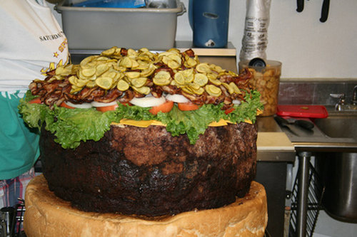 http://livedoor.blogimg.jp/laba_q/imgs/8/5/85dd9ec1.jpg 価格:$499(約4万円) 場所:アメリカ・ミシガン州のショッピングモールにあるスポーツバー。 備考:重さ185.6 lbs(約84kg) 世界一大きなハンバーガーとしてギネス記録に登録。 3. Douche Burger