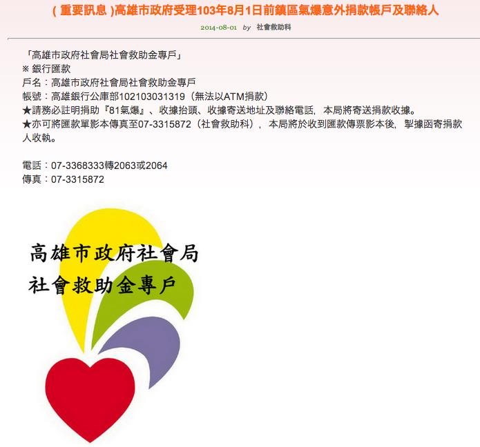 台湾の高雄市政府が 今回の事故の義援金の受付を開始しました。