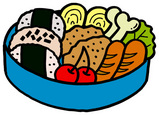 後は、朝 御飯が炊けたら おいなりとおにぎりを、作っておかずを並べたら弁当が完成です。
