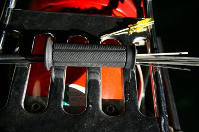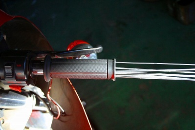内容を確認すると ブレーキホース、 アクセル、チョーク、クラッチ各ワイヤーに加えて 延長ワイヤーハーネスキットも含まれているが、 タミヤのプラモのようには組立が出来る訳では無かった。 しかし かなり良心的に設定されているのは間違いない、 およその部品は日本製造で耐久性がある品物だが ワイヤーは クラッチなど交換が必要になる場合に合わせて延長した品を特定しなければならない、 純正品には 長いアップハンドル用の品番は無いのですからね。