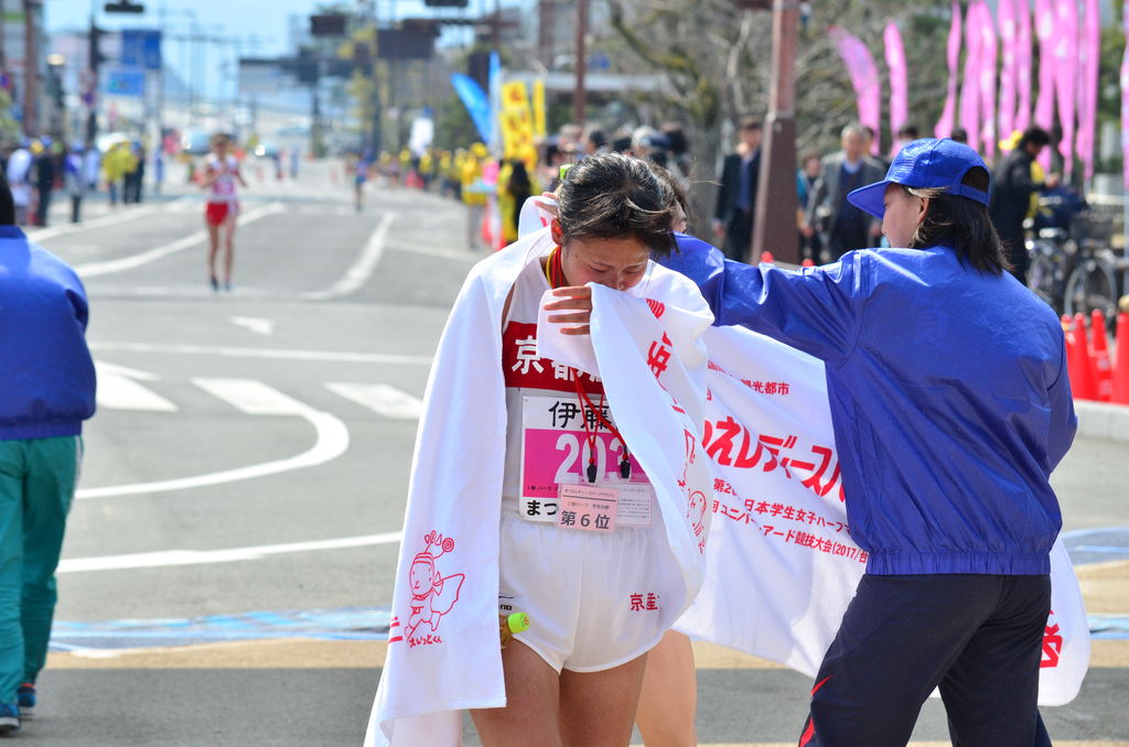 世界選手権(8月、ロンドン)代表選考会を兼ねた名古屋ウィメンズマラソンが12日、ナゴヤドーム発着で行われ、初マラソンの安藤友香(22=スズキ浜松AC)が日本歴代4位の2時間21分36秒をマークし、日本人トップとなる2位。日本陸連の派遣設定記録2時間22分30秒を突破し、世界選手権代表に内定した。ユニスジェプキルイ・キルワ(32=バーレーン)が2時間21分17秒で大会3連覇を飾った。 【写真】笑顔でゴールのテープを切る安藤友香 スタート直後に転倒するアクシデントもあったキルワがレースを引っ張り、日本勢は安藤、清田真央(23=スズキ浜松AC)、石井寿美(21=ヤマダ電機)らが先頭集団に。20キロまでに清田と石井が先頭集団から遅れ、中間地点で早くもキルワと安藤の一騎打ちとなる。 キルワが33キロ過ぎの上り坂で仕掛けて引き離そうとしたが、安藤も必死に食らいつく。その後、徐々にキルワに差を広げられたが粘りの走りを見せ、2時間21分台の好タイムでゴールに飛び込んだ。2時間21分36秒は初マラソンでは日本女子歴代最高記録。野口みずき(2時間19分12秒)、渋井陽子(2時間19分41秒)、高橋尚子(2時間19分46秒)に次ぎ、日本歴代4位の快記録となった。安藤と同じスズキ浜松AC所属の清田が2時間23分47秒で3位に入った。 世界選手権の女子マラソンの枠は最大3。選考会は(1)さいたま国際(2)大阪国際(3)名古屋ウィメンズ(4)北海道)。(1)〜(3)で日本人1位となり、日本陸連の派遣設定記録2時間22分30秒を選考会終了までに突破した選手は内定。ほかに(1)〜(3)で日本人3位以内、(4)で日本人1位の中から総合的に選考される。今年1月の大阪国際では重友梨佐(29=天満屋)が2時間24分22秒で優勝し、代表選出が有力に。昨年11月のさいたま国際では那須川瑞穂(37=ユニバーサルエンターテインメント)が2時間33分16分の5位で日本人トップ、昨年8月の北海道では吉田香織(35=TEAM R×L)が2時間32分33秒で優勝している。