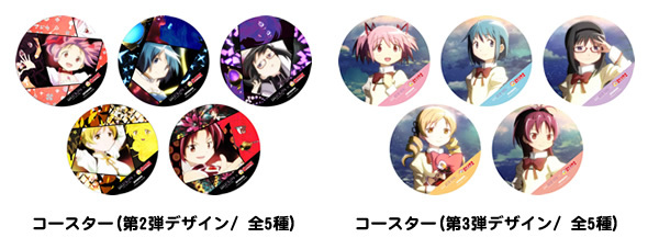 http://www.madoka-magica.com/news/SYS/CONTENTS/2016020913511478211132/w600 ◆特典:1品ご注文につき「オリジナルコースター」を1枚プレゼント! http://www.madoka-magica.com/news/SYS/CONTENTS/2016020913510148485945/w600 ・第2弾 2月9日(火)〜2月29日(月) ・第3弾 3月1日(火)〜3月31日(木) ※第2弾、第3弾デザインは各5種類、絵柄は選べません。 無くなり次第終了となります。