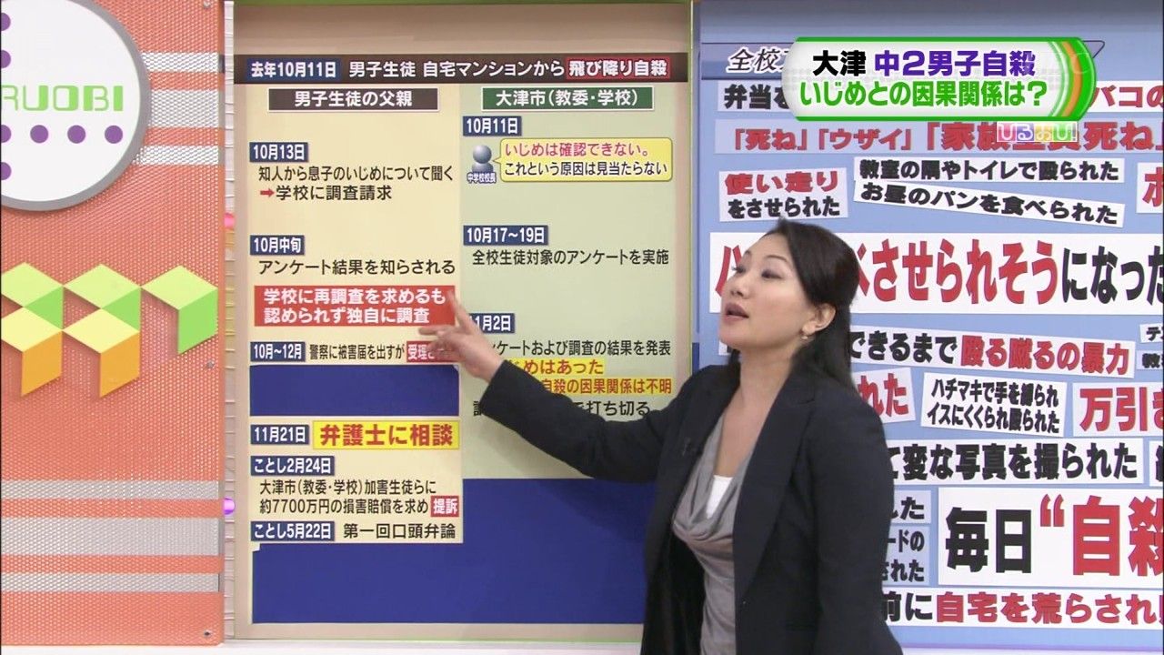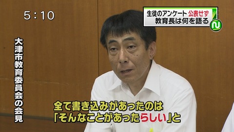 男子生徒の死亡からまもなく9か月。越市長は、教育委員会による調査が不十分だったことを認め、 再調査に乗り出すことを決めました。(大津市・越直美市長) > 788 名前:可愛い奥様[] 投稿日:2012/07/07(土) 16:07:59.49 ID:yPKjX8nB0