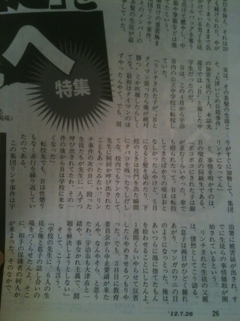 大津いじめ加害者の一人、山●晃●が週刊新潮記事に掲載された記事画像です。転校先でも集団リンチ事件を引き起こしているうえに、被害者自殺は、『父親のDV』という嘘をひろめているそうです。