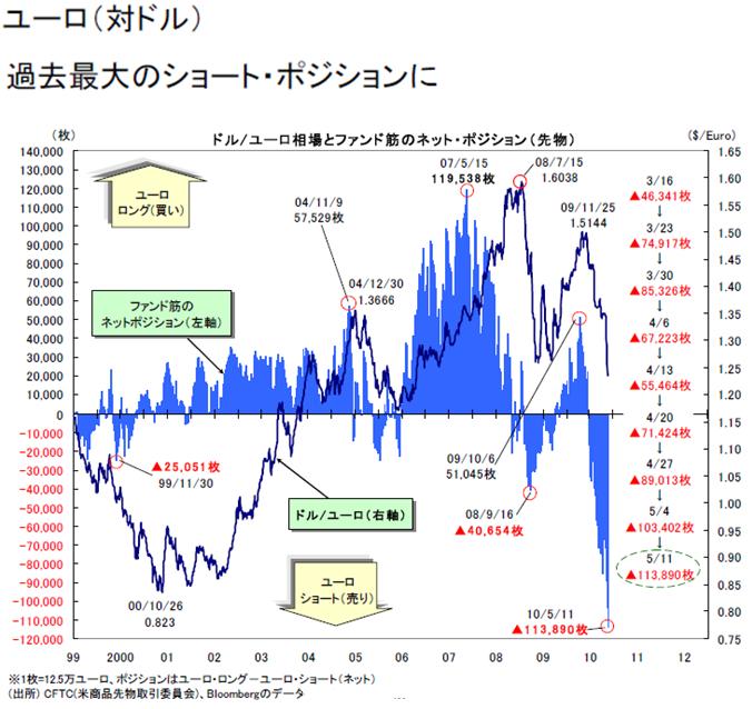 TOPIX : 932.10 -12.54 -1.33% 値上がり数: 508銘柄 値下がり数: 1,050銘柄 変わらず数: 115銘柄 出来高 : 27億1432万株 (前日比 +11.1% ) 売買代金: 1兆9261億円 (前日比 +6.4% ) 値上がり業種: 医薬品 倉庫・運輸関連 陸運業 値下がり業種: その他金融業 その他製品 保険業 NT倍率 : 11.16 (前日比 +0.02 ) 騰落レシオ(25日): 95.00 (前日比 -2.23 ) ■日経JQ平均:1308.87(▼6.13)(▼0.47%) ■マザーズ:458.44(▼17.49)(▼3.67%) ■ヘラクレス:667.02(▼16.15)(▼2.36%) ■ドル円:92.73-92.77 ■ユーロ円:118.08-118.16 三井住友FG:2815円(▼106円)(▼3.63%) 三菱UFJ FG:460円(▼8円)(▼1.71%) ファナック:10100円(△290円)(△2.96%) みずほFG:163円(▼8円)(▼4.68%) ソニー:3090円(△10円)(△0.32%) 東芝:495円(▼23円)(▼4.44%) ソフトバンク:2181円(△18円)(△0.83%) 本田技研工業:2999円(▼56円)(▼1.83%) トヨタ自動車:3495円(▼25円)(▼0.71%) 日立製作所:382円(▼13円)(▼3.29%) ヒロシです。 11日の東京株式市場で日経平均株価は反落しました。終値は、前日比119円60銭(1.14%)安の 1万0411円10銭で、大引け近くに1万0400円を割り込む場面もありました。前日の欧米株式相場の 大幅高を手掛かりに朝方は、100円超上昇したものの、その後は外国為替市場でユーロが伸び悩んだ ことから主力株を中心に利益確定の売りが膨らみました。「欧州の金融システム不安は後退した ものの、財政面の不安は依然として残る」との声もあり、前週末に安値圏で買った投資家などが 利益確定の売りを出したようです。 中国は、4月の消費者物価指数(CPI)などの経済指標を相次ぎ発表しました。おおむね 市場の予想通りだったのですが、「中国の貸出金利の引き上げは既定路線」との見方は多く、 金融引き締めによる中国の需要減が、日本経済に与える影響に警戒が強まったようです。 上海総合指数などアジアの主要な株式相場の下落も投資家心理を後退させました。みずほFGが 増資を検討しているとの報道で株式需給の悪化懸念も広がり相場の重荷になりました。 東証1部の売買代金は概算で1兆9261億円で、売買高は27億1432万株。医薬品、倉庫・運輸、 陸運、小売の4業種のみ上昇、その他金融、その他製品、保険、精密機器、非鉄金属など29業種が 下落しました。 日経平均は、終わってみれば119.60円安。上海、韓国、インドなどの指数も軒並み下げて います。また、米ダウ先物も軟調です。 しかし、・・・ユーロ安が止まりませんね。昨日のユーロ防衛基金設立は、一日だけの 特効薬????市場は、甘くないということの表れなんでしょうが、個人的には、一昨日にユーロの 戻りは弱いなと思っていましたし、今回の防衛基金についても問題ありと思っていましたので、 特に驚くことはないかな?と思っていますが・・・・。 ただ、クロス円は全面的に売り込まれているものの、特にユーロ円は弱く、昨日の上昇分をほぼ 帳消しにするほどの下落となっています。市場が落ち着いてくれば、クロス円は、押し目を買っても 良さそうですが、それでもギリシャ問題を抱えている、ユーロ円での買いは当分の間は避けた方が 良いかもしれません。 90兆円相当の大盤振る舞いでユーロ防衛。不安感を払しょくして株や商品を買わせたくて しょうがないマーケットは、素直にこの大盤振る舞いに飛びつきました。株も商品も急反騰。 でも、内心は、皆、冷めてみているのです。 これは輸血、あるいは輸血に備えた献血のようなもの。痛みを伴う手術(=緊縮経済政策)が これから始まる。患者が果たして痛みに耐えられるか。とくにエンジョイ・ライフの南欧の 国民が・・・・・。 今回の大盤振る舞いを見ますと、実際にEUが、身銭を切るのは1割以下の7兆円程度。 あとは、連帯債務みたいにカネを借りてあげるという部分と実質日米頼みのIMFからの援助。 しかも連帯債務人になってあげるという国々が発行する借金証文(=国債)はECBが 買い取ってユーロを対価として市中に供給するという。いわゆる量的緩和みたいなもの。 あのお堅いことで有名なECBも、さぞ怒り心頭に発していることは想像に難くない。 放蕩息子ギリシアのせいで、「中央銀行の禁じ手」を発動する羽目になったのですから。 でも、結果はユーロの大量発行供給で、その価値が希薄化するは必定。これって実質的な ユーロ切り下げに等しいのでは、ないでしょうか???ギリシアが、ユーロを導入せずに 旧通貨ドラクマを使っていれば、即ドラクマを切り下げて凌いでいただろうに・・・。 ユーロに参加したことで、代わってユーロを実質切り下げざるを得なくなったということなの でしょうか????でも他のユーロ参加国、とくにドイツにしてみればユーロの価値が、薄まる ことは耐えがたいことのようです。 欧州の南北格差問題の厳しい現実を感じます。 こうして、史上最大の支援策も1日天下で終わっており市場は、さらなる支援策を求めて いくのでしょうか??? NYタイムズ作成:欧州債務の連鎖相関図 ⇒ Europe's Web of Debt