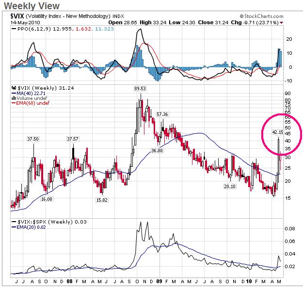 TOPIX : 956.72 -30.32 -3.07% 値上がり数: 135銘柄 値下がり数: 1,523銘柄 変わらず数: 18銘柄 出来高 : 25億8590万株 (前日比 +15.7% ) 売買代金: 2兆0263億円 (前日比 +16.1% ) 値上がり業種: 無し 値下がり業種: 海運業 証券商品先物 不動産業 NT倍率 : 11.17 (前日比 -0.03 ) ■日経JQ平均:1335(▼12.64)(▼0.94%) ■マザーズ:490.35(▼14.4)(▼2.85%) ■ヘラクレス:696.75(▼23.05)(▼3.2%) ■ドル円:93.85-93.88 ■ユーロ円:120.33-120.38 三井住友FG:2985円(▼135円)(▼4.33%) 三菱UFJ FG:472円(▼22円)(▼4.45%) 三井物産:1346円(▼82円)(▼5.74%) 野村HLDG:624円(▼31円)(▼4.73%) トヨタ自動車:3550円(▼115円)(▼3.14%) 三菱商事:2123円(▼121円)(▼5.39%) 日立製作所:404円(▼14円)(▼3.35%) みずほFG:174円(▼8円)(▼4.4%) キヤノン:4220円(▼135円)(▼3.1%) 本田技研工業:3110円(▼105円)(▼3.27%) ヒロシです。 6日の東京株式市場で日経平均株価は、急反落となりました。大引けは、大型連休前の4月30日 終値比361円71銭(3.27%)安の1万0695円69銭でした。1万0700円割れは、3月11日以来、 約2カ月ぶり。下げ幅は今年最大で、2009年3月30日(390円89銭)以来、約1年1カ月ぶりの 大きさでした。連休中の欧米市場でギリシャ財政問題への警戒感が再燃し、下落基調が強まり ました。中国の金融引き締めへの懸念も加わり、東京市場でも投資家心理が悪化。 連休中の欧米市場では、国家財政問題への警戒感が、ギリシャから他の南欧諸国に波及し、 米ダウ工業株30種平均は、連休の間に300ドル近く下げ、東京市場でも目先の利益をひとまず 確定するための売りが朝方から優勢となりました。 後場寄り直後には下げ幅を縮小する場面もありましたが、その後は、再び売り圧力が増しました。 米メディアが、爆発物の恐れからニューヨーク市の橋が一時閉鎖されたと報じたほか、上海など アジア株式相場が大幅に下落したことが心理悪化に拍車をかけました。 東証1部の売買代金は概算2兆263億円と、株価指数先物の特別清算指数(SQ)算出日だった 3月12日に次いで今年2番目の高水準でした。TOPIX業種別株価指数(33業種)では、海運、 証券商品先物、不動産、鉄鋼、卸売など33業種全てが下落しました。 連休中の米国や欧州の株価下落を嫌気し、京セラやキヤノン、ソニー、トヨタ、ホンダなど主力の 輸出関連株が軒並み安。対ユーロで大幅に円高が進んだことで、欧州の売上高比率が高いダイキンや マツダが下落。米原油先物価格の大幅安や、オーストラリア政府が正式発表した鉱物資源会社の 利益を対象とした新課税案を懸念し、三菱商や三井物など商社株も大幅続落。中国の金融引き締め への警戒感やバルチック海運指数安を受け、商船三井や川崎船など海運株が大幅安。三菱UFJや 三井住友など大手銀行株を始め、MS&ADHDやT&DHDなど保険株、野村HDや大和証Gなど証券株は、 軒並み売られました。一方、先週末市場予想を上回る11年3月期の見通しを発表したTDKは小幅高。 シティグループ証券が投資判断を引き上げた昭和シェルも逆行高となりました。 ヒロシです。 連休中の4日には、スペイン首相の噂を否定する発言はあったものの、スペインが、ユーロ圏に 対して約2800億ユーロの支援を求めるとの噂が流れたり、5日には、米格付け会社ムーディーズ がポルトガルの長期格付けを1段階か2段階格下げする方針で見直すと発表し、財政問題から 世界的なリスク回避の動きが強まりました。 リスク回避の流れは、株式市場だけではなく、商品市場でも資金流出の流れとなり、5日は 原油先物価格も大幅下落となって3月22日以来の安値まで下落しています。 このように日本が連休のあいだに、世界的な資金の流れに変化が出たと考えられます。 そして、ギリシャの10万人規模のゼネストが暴動に発展し、銀行等が放火され、3人が死亡、 20人以上が負傷する事態になってきていますが、ギリシャ政府は、対策がとれない事態に 陥っています。 この暴動を受けて【ユーロ】は急落し、<ユーロ・ドル>は1.2734まで売り込まれ、 1.28割れにまで急落し、<ユーロ・円>はユーロ118.84円と119円台を下回って きています。 ここにきての【ユーロ】急落は余りにも急激過ぎますので、ここらで一旦『休憩』する事も あり得ますが、一旦、崩壊が起こった相場は、いきつくところまでいきませんと相場は落ち着かず、 最終的には、1ユーロ=1ドルというところまで売り込まれる可能性があります。 儲かるからとして【ユーロ】・【ポンド】・【スイスフラン】等を買った投資家は、いまや 日々拡大する損を前に茫然となっているようですが、今後、【ユーロ】崩壊となれば資産半減 どころの話ではなくなりるはずです。 まあ、為替は、今後とも油断は許されませんが、株式市場は、冷静に判断するべきです。 確かに、欧州問題が長引いた場合、金融システム不安が高まり、つれて、米国景気に影響を与える との連想が働き出します。日本株は、米国の景気敏感株のような側面もあり、ここでは、欧州問題の 長期化から米国景気の悪化──そうした懸念から、日本株が売られたと推