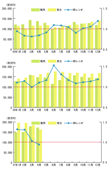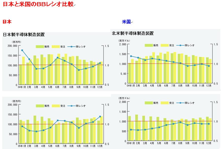 2006年より、常に日本の株価をリードしてきた半導体銘柄!! 特に、日本の半導体製造装置は、世界の追随を許さない、優良企業!! 半導体BBレシオの上昇とともに、株価は、急上昇してきた!! しかし、4月の速報値で、異変が!! はじめて、1.0を割り込んでしまったのだ!! 1月2月の需要の急増に対応して、生産能力も増強されたと思ったら、 肝心の半導体の需要が、減少!!BBレシオが、1.0を下回ってしまった!! 韓国のサムスンをはじめとする、海外勢力も、半導体の大幅な増産体制を整えてきており 半導体の価格の下落が止まらない!!それに追いうちをかけるような、BBレシオの悪化!! 日本の半導体製造装置の株価下落が、心配だ!! さらに、関連の半導体メーカーの株も、外国勢が、売ってくる可能性もある!! 来月のBBレシオが、どうなるか、注目したい!! 株価チャンネル(クリックお願いします!) ← 大勢の個人投資家と力を合わせて戦うために、ご協力を!! |