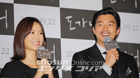 6日午後2時、往十里CGV(ソウル市城東区)で、映画『るつぼ』のメディ試写会が行われた。写真は、フォトタイムに応じるチョン・ユミとコン・ユ。