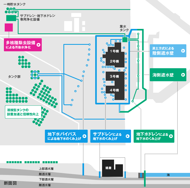 これを受け、座長役の更田豊志委員長代理は、1〜4号機原子炉建屋周囲の 地下水をくみ上げ、浄化処理した上で海へ放出する「サブドレン計画」の必要性を強調。