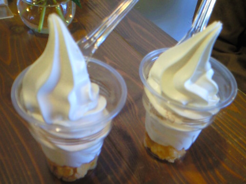 三井倶楽部のあまりに小さいバナナゼリーのデザートではあきたらずはちみつソフトをいただき。。。↓