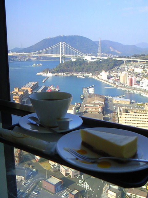 コバラが空いたのでケーキセットを門司港レトロ展望室でいただきました。↓