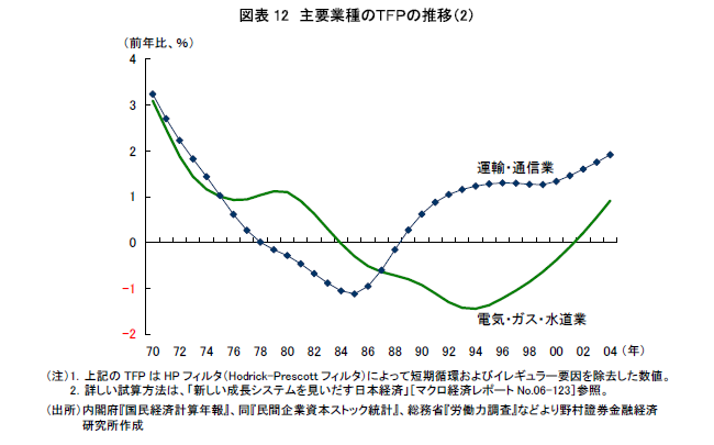 本日は、10年前のヒーローで、現在は、鳴かず飛ばずの塩漬け銘柄、NTTドコモと そのドコモに、真正面から戦いをいどむ、株式界のわんぱく坊主ソフトバンクについて 比較しながら、分析してみたい!! http://www.geocities.jp/de0tx/_gl_images_/sti27.gif http://www.geocities.jp/de0tx/_gl_images_/kim0000580.gif 製造業を中心に、改善傾向を示す「全要素生産性(TFP)」