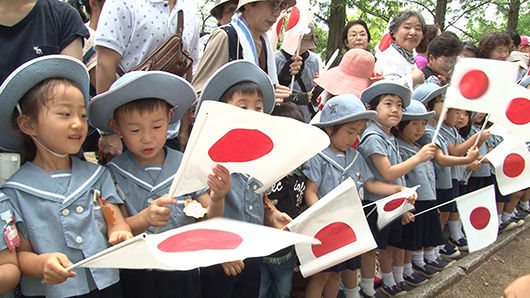 読売テレビの「皇室日記」を見ていたら、天皇・皇后陛下の大阪ご訪問時に、幼稚園児が奉迎しているシーンがあった。