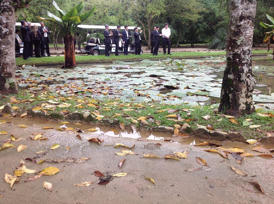 7日午前、リオ市内植物園(ジャルジン・ボタニコ)内日本庭園改修事業にご出席。州知事公邸でご引見後、州知事主催昼食会にご出席。午後からはリオ日系協会で在留邦人歓迎行事にご臨席。その後、コルコバードを視察される。