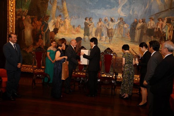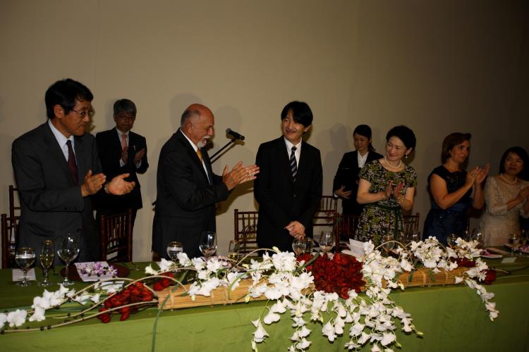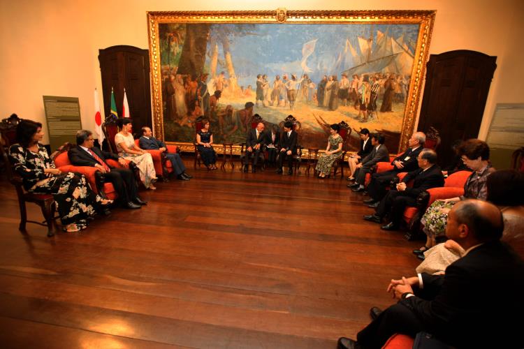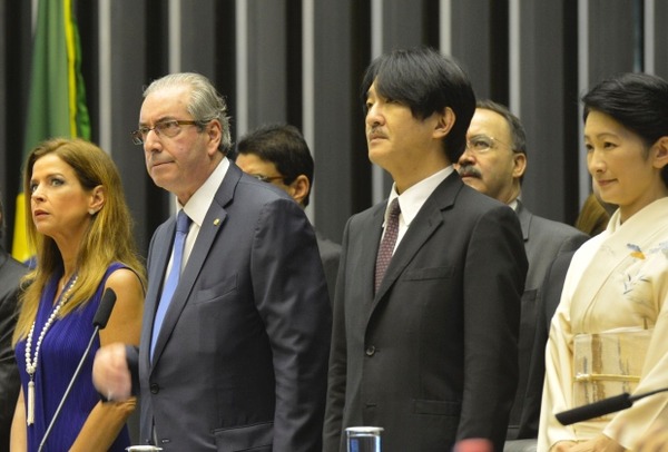 5日午前、連邦議会・下院議会ほかとご引見。連邦議会主催日本ブラジル外交樹立120周年記念式典にご出席。上院議長ほかとご引見。その後、連邦直轄区政庁で同直轄区知事とご引見。午後からはセラード農牧研究センター内をご視察。在ブラジル日本国大使館で日系人代表ほかとご懇談後、日系社会歓迎行事にご臨席。 Eduardo Cunha (PMDB-RJ) エドゥアルド・クーニヤ下院議長(民主運動党・PMDB)と
